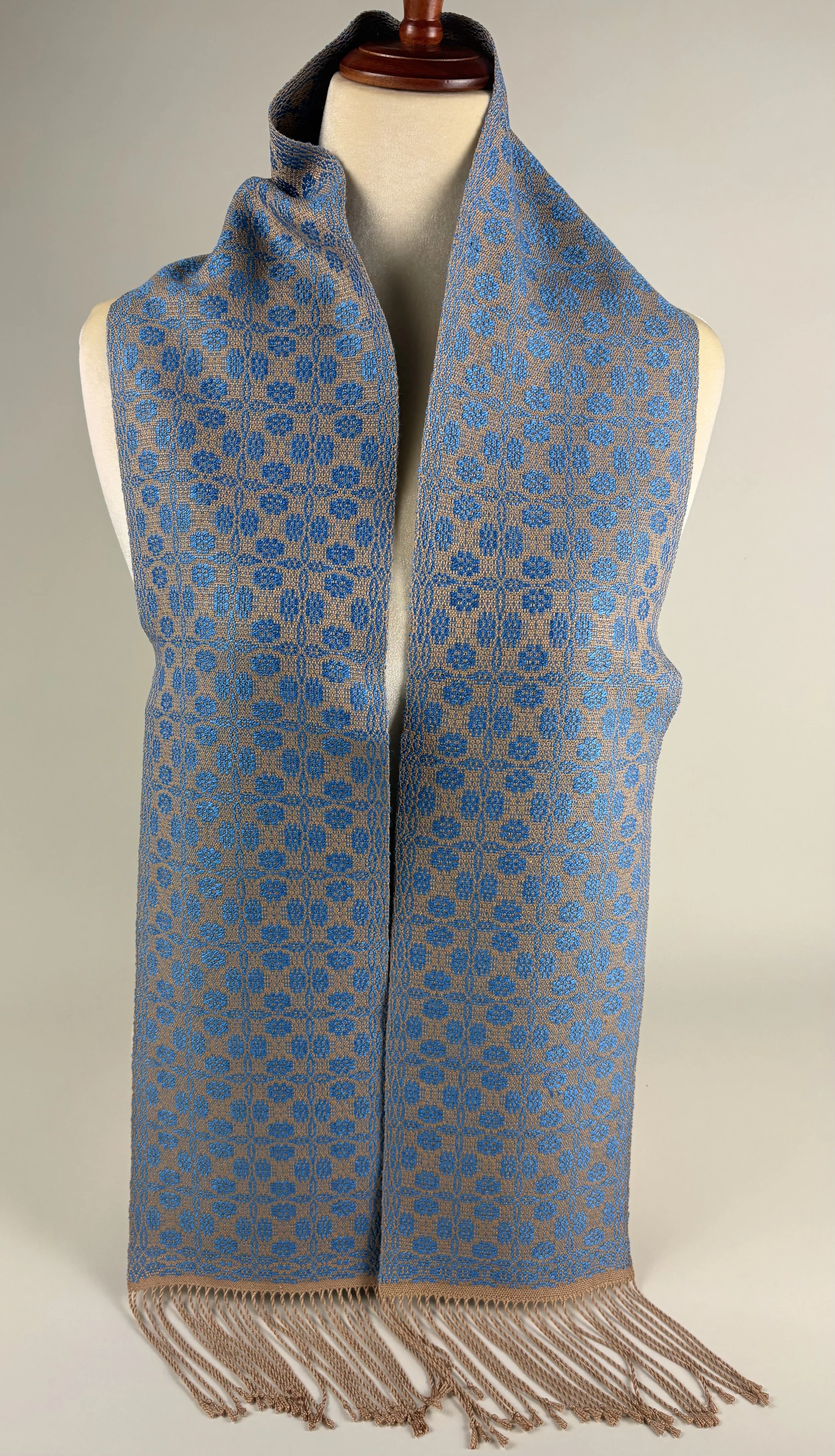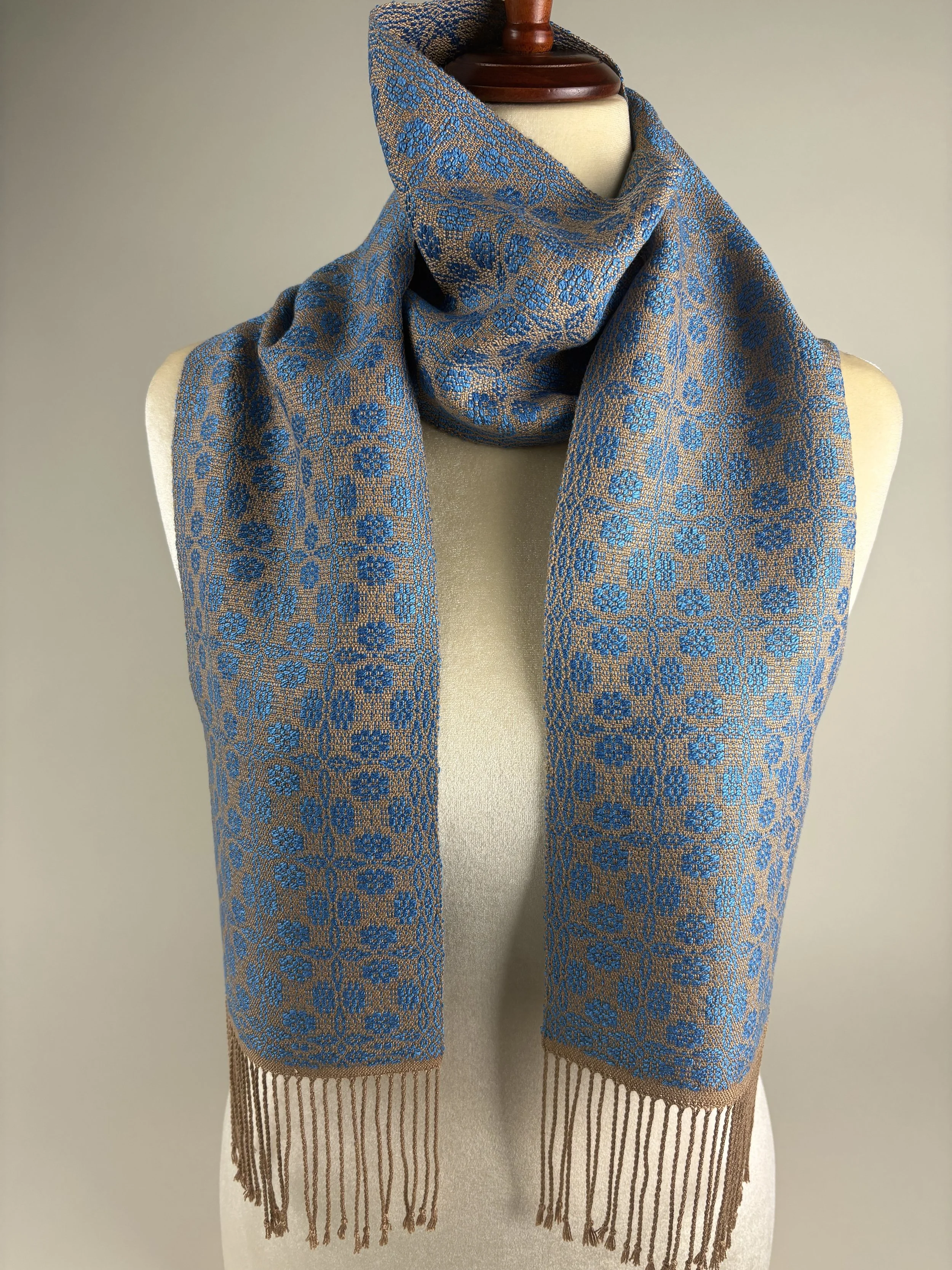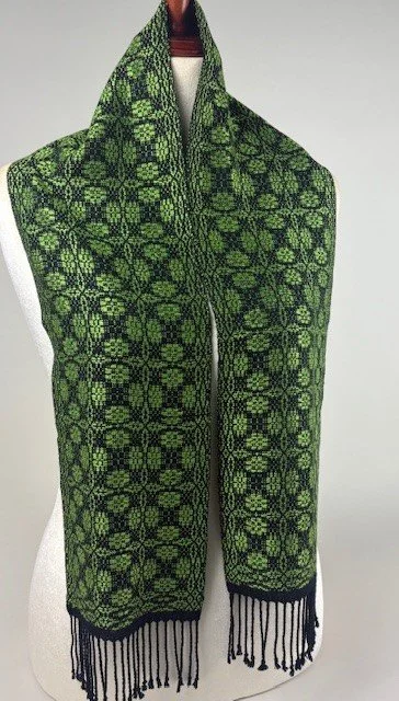 Each piece is meticulously woven on one of my three Schacht floor looms, utilizing time-honored patterns that have been preserved and transmitted through countless generations. I deliberately choose only the highest-quality yarns, guaranteeing that every creation is distinguished by its uniqueness and crafted with exceptional care and precision.
